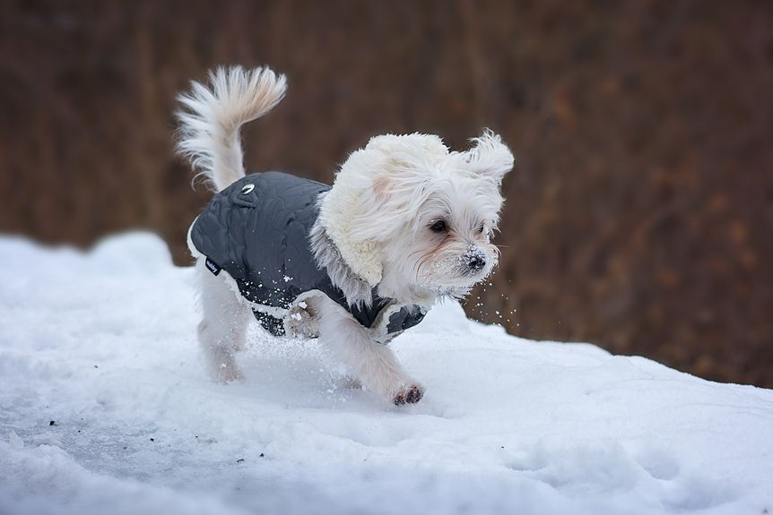 Bei Sturm oder eisiger Kälte freuen sich viele Hunde über ein Mäntelchen.