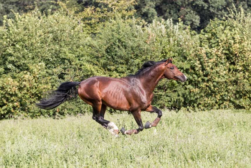 Eine der größten Stellschrauben, wenn es um die Behandlung von Kotwasser geht, bleibt aber die Fütterung des Pferdes. Sind gesundheitliche oder psychosomatische Faktoren ausgeschlossen, sollte die Ration des Tieres deshalb genaustens beleuchtet werden. Besonderes Augenmerk ist hierbei auf eine ausreichende Raufutterqualität zu legen: Verdorbenes, mit Milben, Bakterien oder anderweitig kontaminiertes Heu provoziert häufig Magen-Darm-Beschwerden und sollte deshalb niemals an Pferde verfüttert werden. Silage bzw. Heulage hat oftmals einen negativen Einfluss oder sind der Auslöser einer Kotwasserproblematik. Stattdessen sollte ein qualitativ hochwertiges Heu, mit einem geringen Lignin-Anteil, also wenigen „harten“ Stängeln, immer die erste Wahl bei Pferden mit Kotwasserproblemen sein. Kann die Raufütterung nicht umgestellt werden, empfiehlt es sich die Raufutterration mit Heu-Cobs oder NATURE`S BEST Esparsette-Cobs aufzuwerten. Keine zu langen Fresspausen und viele kleine Portionen über den Tag verteilt, zeigen sich als wirksamstes Mittel im Fütterungsmanagment, wenn es um die Bekämpfung von Kotwasser geht. Bei Weidegang oder Paddockhaltung ist insbesondere darauf zu achten, dass die Pferde keinen Sand oder Erde aufnehmen. Die Reizung des Darms infolge von Sandablagerungen kann ebenfalls die Symptomatik auslösen oder verschlimmern. Zudem sollte die Weide stets frei von Giftpflanzen gehalten werden – nimmt das Pferd diese auf, können sie Auslöser für Verdauungsbeschwerden und andere gesundheitliche Beschwerden sein.