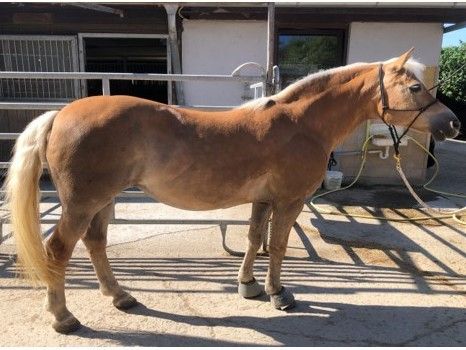 Abb. 2: dünnes Pferd mit Hufrehe ( Urheberrecht Henrike Scherf)